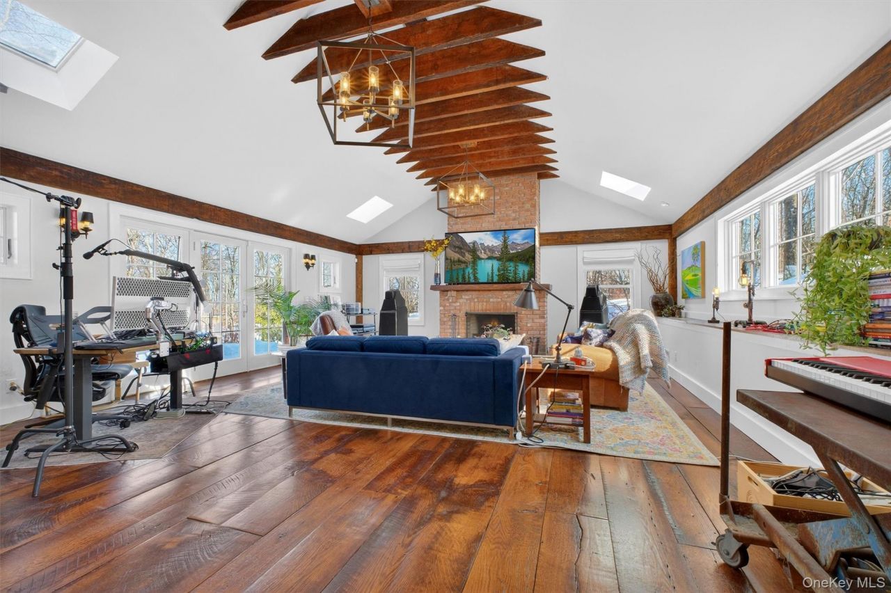 Tucked away in the prestigious Quaker Hill area of Pawling, this cozy ranch-style country home offers a private setting, on 6.8 wooded acres, where time slows and weekends linger. Thoughtfully renovated in 2018, the residence is rich in character, featuring 100-year-old reclaimed posts and beams from a barn in Western PA and 150-year-old wide-board floors reclaimed from a CT tobacco barn that radiate warmth and charm. The heart of the home is a stunning Great Room with vaulted ceilings, exposed ceiling joists and built-in doorway bookshelves that were reclaimed from a Brooklyn warehouse, a dramatic floor-to-ceiling fireplace with bricks salvaged from a 100-year old children's hospital in CT and a live-edge fireplace mantle came from a large oak tree that was on this property. All of the intricacies of this renovation create an inviting space for everyday living or gracious entertaining. The country kitchen is equally compelling, highlighted by marble countertops, high-end stainless steel appliances, and a one-of-a-kind island handcrafted from a commercial bakery table in Akron, OH. The open concept kitchen, dining, and living room (with 2nd fireplace!) flow seamlessly, blending form and function with effortless style. An enclosed screened-in porch overlooks the neighboring horse farm and features a hot tub and propane heaters for year-round enjoyment. The bunk room provides flexible space for hosting extended family and guests. Updated bathrooms add modern comfort, while a whole-house automatic Generac generator ensures peace of mind in every season.Set on 6.8 private, wooded acres with a front deck that runs the full length of the house, this is a rare opportunity to own a private country getaway in one of Pawling's most sought-after neighborhoods - where historic materials, thoughtful renovation, and understated elegance come together seamlessly. Equally suited as a full-time residence or a comfortable weekend retreat, this property exemplifies the refined balance between rustic beauty and modern comfort.