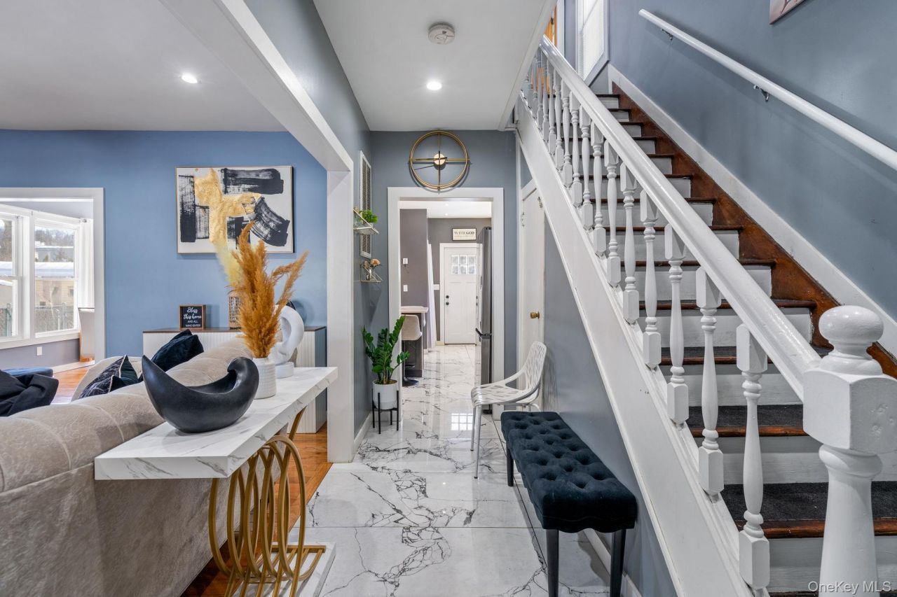 This home is a must see in commuter friendly Harriman! Completely renovated in 2021/2022, this home features a gorgeous upgraded kitchen with stainless refrigerator and dishwasher, quartz countertops, an island and marble tile flooring. On the first floor, you enter through the enclosed front porch, into the foyer and are greeted by beautiful hardwood floors and recessed lighting throughout the entire home. Living room, dining room and lavatory complete the first floor. Upstairs find three bedrooms, an updated full bathroom, an additional room for an office and access to a balcony that spans the front of the home. There is also an attic with staircase access, that can be finished for extra living space with newer washer and dryer. Off the kitchen, head to the deck and the large, flat and fenced backyard with an above ground pool. Updates include, plumbing, electric, a/c and sewer pipe. Basement is over-sized crawl space, great for storage. Close to major highways and shopping, just bring your stuff and move right in!